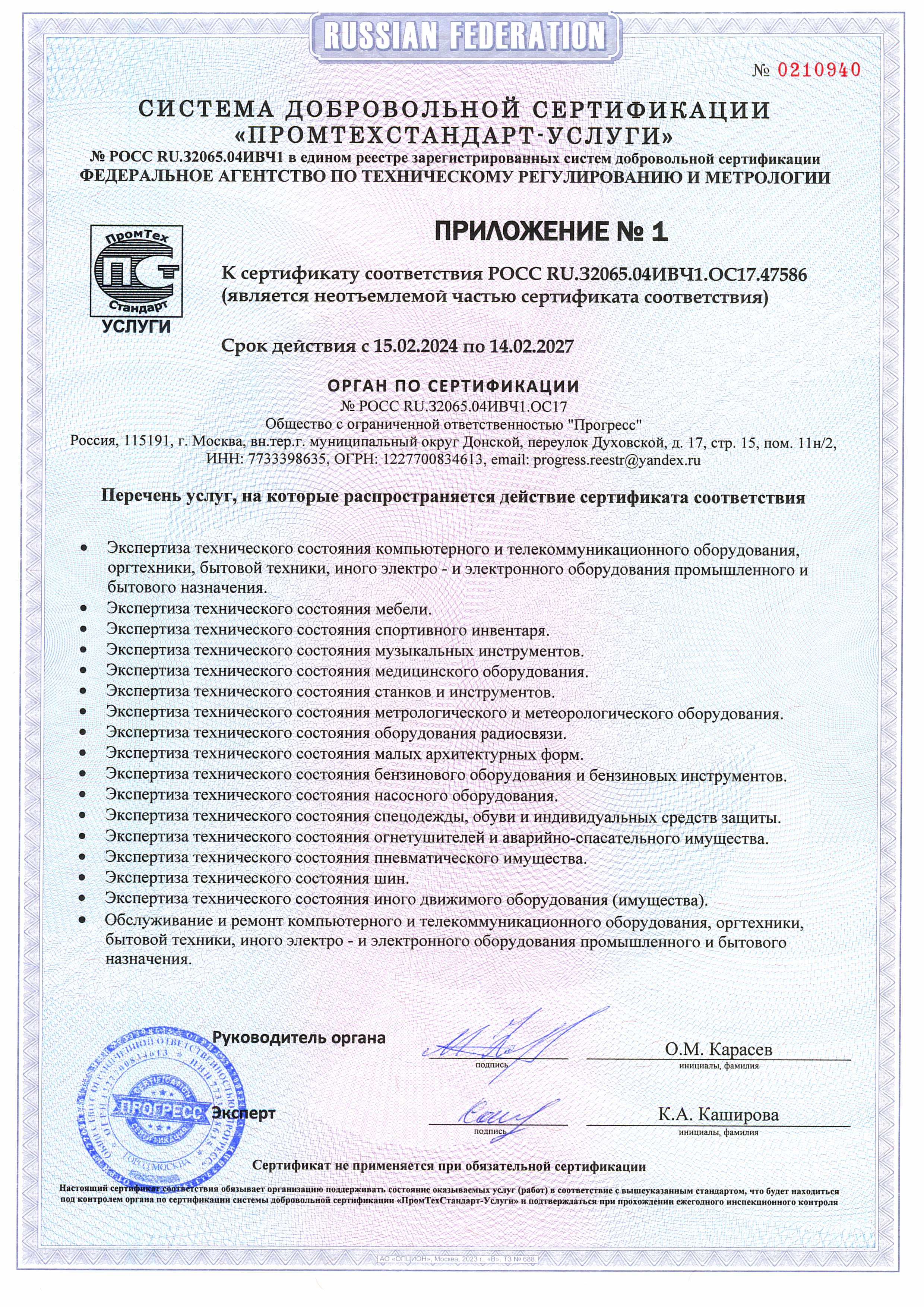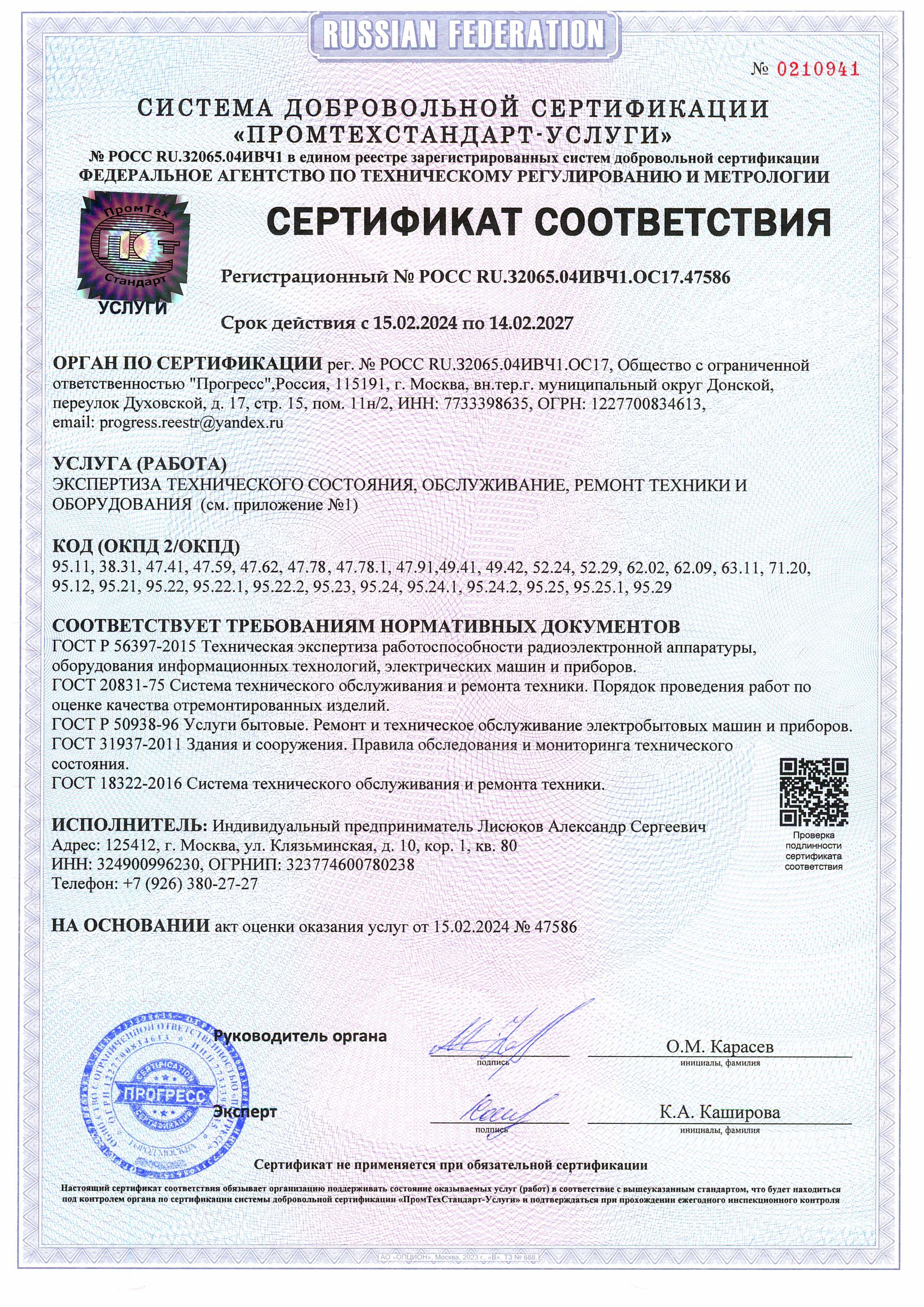Сертификат соответствия № РОСС RU.32065.04ИВЧ1.ОС17.47586 от 15.02.24г.